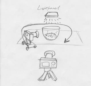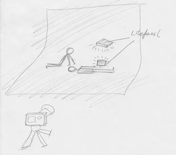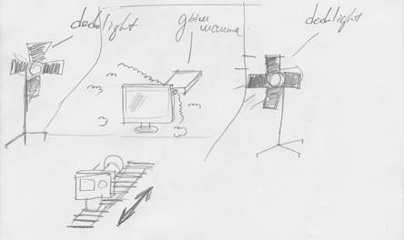 Изначально наша дипломная работа должна была представлять из себя типичный фильм-портрет. Документалка про слепого человека, его нелегкую жизнь. Простой, но качественный фильм. Но уже в процессе съёмок, мы выяснили, что за интересной биографией героя стоит его необычная профессия. Так тема фильма сместилась от портрета в сторону документально-познавательную. Было ли это ошибкой - сказать сейчас трудно. Забегая вперед, скажу, что к моменту начала написания сценария у нас уже были сняты гигабайты повседневной жизни главного героя, комментарии его друзей и даже интервью с родителями, которые живут в Кемеровской области и о которых герой так нелестно отзывался. Практически всё это пошло в корзину. Это точно был бы совершенно другой фильм. Но как бы там ни было, после упорной формулировки темы, которая свелась к смерти и её значению в терапии, мы начали сбор информации. Длинные беседы с экспертами, психологами, людьми, так или иначе имевшими опыт с танатотерапией. Зачастую эти многочасовые интервью на монтаже превращались в 2-3 фразы, а некоторые так же исчезали бесследно в корзине. Но эти жертвы были оправданы выстраиванием четких вопросов и ответов, которые мы затронули в фильме. Съёмки интервью прошли довольно просто, что нельзя сказать о постановочных моментах. Хоть работа и называется документальным фильмом, постановочных кадров и ситуаций в ней не мало. Сложнее всего было обыграть те образы, которые режиссёр с журналистом решили показать, говоря о смерти и мозговых процессах. Банальные кадры с кладбищем мы конечно тоже отсняли, это простой и яркий образ смерти, а медленное и плавное движение камеры между надгробий (эпизод на кладбище) создавало эффект умиротворённости и тишины. Смерть, как процесс в танатотерапии, была так же обыграна в виде ощущений тонущего человека. Пожалуй это была одна из сложнейших съёмок в этой работе. Для этих кадров мы погружались на 5 метровую глубину в бассейне. На мне бы надет акваланг, в руках был подводный бокс с камерой. В результате картинка вышла практически такой, какой мы её себе и представляли. Однако были и неувязки. Сквозь толщу воды, стекла маски и бокса было трудно разглядеть экран камеры. Мы полагались на автофокус, который не всегда срабатывал точно, поэтому многие хорошие кадры были замыленные и отбраковывались сразу. Если для глаза под водой было довольно светло, то для камеры это было не так. Значения ISO зашкаливали, а мощности постановочного света не хватало. Довольно живописными с точки зрения света получились студийные съёмки. Эпизод с вентилятором: дым-машина создала атмосферу запылённости и стало видно, как лучи света пробиваются между лопастями. В эпизоде с монитором, мы так же использовали дым, а по бокам поставили два световых линзовых прибора с синими фильтрами, тем самым создав эффект холодной «больничной» атмосферы. Очень необычными для всех нас стали съёмки с главным героем – слепым танатотерапевтом Андреем. Сначала мы буквально за руку перетаскивали его с места на место и боялись как бы он не зацепил осветительный прибор, как выяснилось - переживали напрасно. Чувствующаяся неловкость довольно быстро улетучилась. Поразительно, но у нас не возникало ощущения, что человек не видит, с точки зрения процесса съёмок – с ним работалось на удивление легко. Самой большой ошибк
