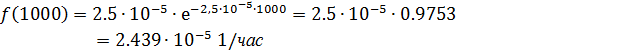 2.Вычислим вероятность отказа q(1000). Имеем: q(1000)=l-p(1000)=0.0247. 3.Вычислим частоту отказов: