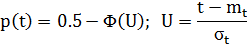 Задача 2. 2. Время работы элемента до отказа подчинено нормальному закону с параметрами mt=8000 час, t=2000 час. Требуется вычислить количественные характеристики надежности p(t),f(t), λ(t), mt для t = 10000 час. Решение. Воспользуемся формулами (2.11), (2.12), (2.1З),(2.14) для p(t),f(t), λ (t), mt 1. Вычислим вероятность безотказной работы:
