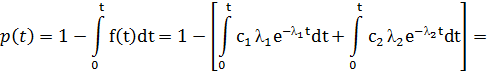 Задача 2.1. Время работы элемента до отказа подчинено экспоненциальному закону распределения с параметром λ=2.5·10-51/час. Требуется вычислить количественные характеристики надежности элемента p(t), q(t), f(t), mt, для t=1000час. Решение. Используем формулы (2.6), (2.7), (2.8), (2.10) для p(t), q(t),f(t), mt. 1.Вычислим вероятность безотказной работы: