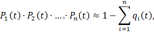 где mti - среднее время безотказной работы i - го элемента. При расчете надежности систем часто приходится перемножать вероятности безотказной работы отдельных элементов расчета, возводить их в степень и извлекать корни. При значениях P(t), близких к единице, эти вычисления можно с достаточной для практики точностью выполнять по следующим приближенным формулам: