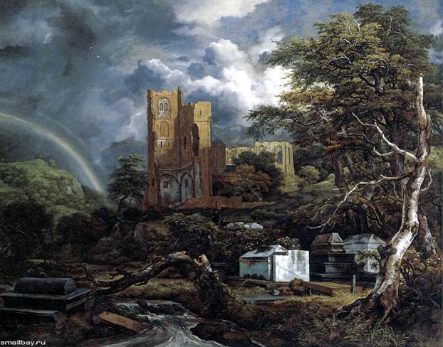 Выдающимся пейзажистом Голландии был художник Якоб ван Рейсдал (1628/1629—1682), одухотворивший свои пейзажи большими личными чувствами и переживаниями. Так же как и другие крупнейшие художники Голландии, он не шел на уступки вкусам буржуазных заказчиков, всегда оставаясь самим собой. Рейсдал не ограничивался определенными темами изображения. Круг его пейзажных мотивов очень широк — это виды деревень, равнины и дюны, лесные болота и море, изображенные в самую различную погоду и разные времена года. Творческая зрелость живописца приходится на середину 17 века. В это время Якоб ван Рейсдал создает произведения, исполненные глубокого драматизма, передающие внутреннюю жизнь природы: «Вид деревни Эгмонд» (Москва, Государственный музей изобразительного искусства), «Лесное болото» (1660-е годы, Санкт-Петербург, Эрмитаж), «Еврейское кладбище» (1660-е годы, Дрезден, Картинная галерея), которые своим сдержанным, сумрачным колоритом, монументализацией форм и построений отвечали переживаниям художника.