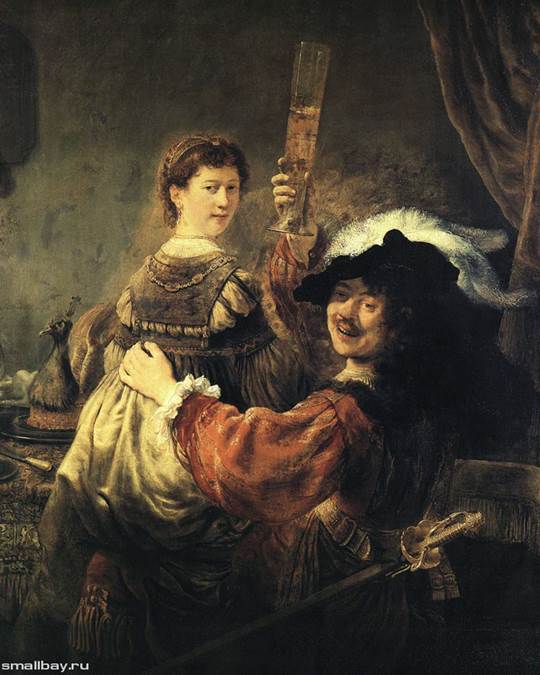 Творчество гениального Рембрандта (1606—1669) — одна из вершин мировой живописи. Необычайная широта тематического диапазона, глубочайший гуманизм, одухотворяющий произведения, подлинный демократизм искусства, постоянные поиски наиболее выразительных художественных средств, непревзойденное мастерство давали художнику возможность воплощать самые глубокие и передовые идеи времени. Колорит картин Рембрандта зрелого и позднего периода, построенный на сочетании теплых сближенных тонов, переливающихся тончайшими оттенками, свет, трепещущий и концентрированный, как будто излучаемый самими предметами, способствуют необычайной эмоциональности его произведений. Но особую ценность сообщают им высокие, благородные чувства, которые придают будничным вещам поэтичность и возвышенную красоту. Рембрандт писал картины исторические, библейские, мифологические и бытовые, портреты и пейзажи; он был одним из величайших мастеров офорта и рисунка. Но в какой бы технике Рембрандт ни работал, в центре его внимания всегда стоял человек, с его внутренним миром, его переживаниями. Своих героев Рембрандт часто находил среди представителей голландской бедноты, в них раскрывал лучшие черты характеров, неисчерпаемое духовное богатство. Веру в человека художник пронес через всю жизнь, невзгоды и испытания. Она помогла ему до последних дней создавать произведения, выражающие лучшие устремления голландского народа. Рембрандт Харменс ван Рейн родился в Лейдене, в семье владельца мельницы. Его учителями были Сванненбурх, а затем Ластман. С 1625 г. Рембрандт начал работать самостоятельно. Ранние его работы носят следы воздействия Ластмана, иногда — утрехтских живописцев, последователей Караваджо. Вскоре молодой Рембрандт нашел свой путь, ярко обозначившийся в портретах, сделанных главным образом с самого себя и своих близких. Уже в этих произведениях светотень стала для него одним из основных средств художественной выразительности. Он изучал различные проявления характеров, выражения лиц, мимику, индивидуальные черты. В 1632 году Рембрандт переехал в Амстердам и сразу же завоевал известность картиной «Урок анатомии доктора Тульпа» (1632, Гаага, Маурицхейс). По существу, это большой групповой портрет врачей, окруживших доктора Тульпа и внимательно слушавших его объяснения на анатомированном трупе. Такое построение композиции позволило художнику передать индивидуальные черты каждого портретируемого и связать их в свободную группу общим состоянием глубокой заинтересованности, подчеркнуть жизненность ситуации. В отличие от групповых портретов Хальса, где каждый из портретируемых занимает равнозначное положение, в картине Рембрандта все персонажи психологически подчинены Тульпу, фигура которого выделена широким силуэтом и свободным жестом рук. Яркий свет выявляет центр композиции, способствует впечатлению собранности группы, повышает экспрессию. Успех первой картины принес художнику множество заказов, а с ними и благосостояние, которое увеличилось с его женитьбой на патрицианке Саскии ван Эйленбурх. Одну за другой пишет Рембрандт большие религиозные композиции, подобные полному динамики и патетики «Жертвоприношение Авраама» (1635, Санкт-Петербург, Эрмитаж), парадные портреты. Его увлекают героико-драматические образы, внешне эффектные п