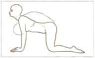 Вайю-Мудра очищает кровь, снимает артритные боли, лечит суставы, параличи, болезнь Паркинсона, хорошо действует против радикулита, ревматизма, болей в коленях, дрожания рук, шеи, головы. Улучшает газообразование, облегчает боль в шее, спине. Задачей этой мудры является ослабление «ветра» (воздуха) в разных частях тела. Аюрведическая медицина исходит из того, что разного вида «ветра», находящиеся в теле, могут вызывать многочисленные нарушения, в том числе подагру, ревматизм, ишиас, вздутия, ревматизм, дрожь рук, шеи, головы. Техника выполнения: Обе руки: Указательный палец укладывайте так, чтобы он подушечкой доставал основание большого пальца и касался его. Большим пальцем слегка придерживайте указательный палец в этом положении, а оставшиеся пальцы выпрямлены и расслаблены. При своевременном применении этой Мудры улучшения наступают очень быстро. При хронических заболеваниях дополнительно нужно применять Прана-Мудру (см. №6). Прекращать практиковать Вайю-Мудру надо сразу после выздоровления. Слишком большой "ветер" тела может возникать из-за внутренних зашлаковок (особенно в кишечнике), из-за состояния сильного возбуждения или из-за нарушения дыхательного ритма. Впрочем, возбуждение и сбой дыхательного ритма взаимосвязаны. При зашлаковке кишечника в дополнение к Мудре можно применять Станьте на четвереньки. На вдохе приподнимайте голову прогибая спину, как показано на рисунке. На выдохе опускайте голову, выгибайте спину в вверх и одновременно сильно втягивайте брюшную стенку. Вдох и выдох глубокие. Делайте 15 - 30 повторов, в зависимости от физического состояния, усердно, но не изнемогая. Дыхание и Визуализации: Представьте себе, что Вы в центре шторма. Во время выдоха Вы дуете по направлению ветра. Теперь все Ваши внутренние перекосы и шлаки выходят из Вас и уносятся ветром. Постепенно шторм затихает, а также Вы становитесь более спокойными, постепенно замедляя и ослабляя дыхание. Теперь Вы делаете паузы после вдоха и выдоха, осознавая, как воздух тонко устремлялся в Ваши легкие на вдохе; медленно и спокойно выходил на выдохе. Погрузитесь в приятное спокойствие и черпайте от туда новые силы. Аффирмации: Я повсюду и в любое время свободен и спокоен. Растения, специи: Больше зеленого чая. Дополнительно применяйте настои, необходимые при вашем конкретном заболевании.