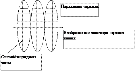 Осевые меридианы каждой зоны взаимно параллельны. Ширина шестиградусной зоны (по экватору) примерно равна 1000 км. Проекция Гаусса-Крюгера равноугольная - т.е. такая картографическая проекция, в которой сохраняются углы изображаемых фигур. Выполнение этого условия приводит к искажению длин линий - все линии на плоскости длиннее по сравнению с их горизонтальными проекциями. Таким образом в проекции Гаусса-Крюгера изображаемые фигуры сохраняют конфигурацию но искажается их площади. Искажения возрастают от середины к краям зоны.