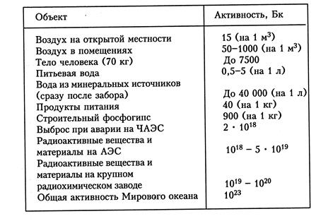 Таблица 3 Активности некоторых естественных и техногенных объектов