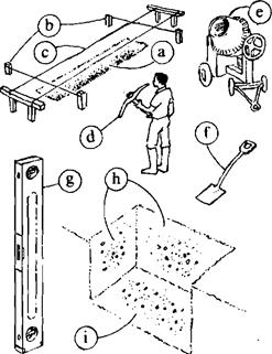 How to prepare a foundation for a brick wall 1 Mark out the trench with lines and pegs. 2 Dig out the trench with a pickaxe and shovel until it is about 150 mm deep and 300 mm wide. 3 Check that the floor of the trench is horizontal using a plumb and-level. 4 Make sure that the sides of the trench are vertical. 5 Place pegs in the floor of the trench and stretch a line between them. 6 Check that the line is horizontal. 7 Fill up the trench evenly with concrete until it is level with the line. 8 Leave the concrete until it is hard. 9 Build the wall on the concrete. 1 What are these objects called? (Look at the words in italics in the passage.)