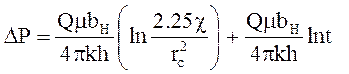 Или y=a+bx. КВД на забое скважины записывает изменение забойного давления во времени. А фактическую кривую DP(t) необходимо перестроить в DP(lnt) и найти ее постоянные коэффициенты a и b. Вычислив b, можно определить ε=kh/μ: ε=Qbн/4pb. Зная ε легко найти проницаемость k. Зная m, β,β*®c. a, b,c®r пр.