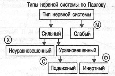 Рис. 2.5. Типы нервной системы, указанные И. П. Павловым.