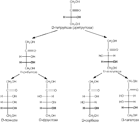 Для перехода от D- к L-ряду, необходимо изменить конфигурацию всех ассиметрических углеродных атомов на противоположную.