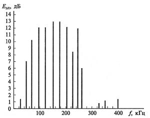 Рис. 7.2. Спектральная характеристика переменного электрического поля на рабочем месте пользователя. Монитор СМ-102, Тайвань