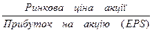 Коефіцієнт „ціна – прибуток” (Price / Earnings ratio) = = Ринкова ціна акції: Прибуток на акцію (3.2)