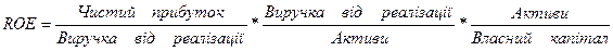 Для фінансових коефіцієнтів (на відміну від обліку) не існує міжнародних стандартів, тому, вибираючи їх, слід спиратися на власний досвід, здоровий глузд, ураховувати вітчизняну специфіку. Не потрібно перевантажувати аналіз показниками, що несуть одну й ту саму інформацію. Існують методики, в яких пропонуються дуже багато показників. Не всі вони потрібні для аналізу, оскільки є коефіцієнти, що тісно корелюють між собою і, отже, показують одне й те саме. Слід вибирати показники, що майже не корелюють між собою, тоді кожний з них нестиме додаткову інформацію про фінансове становище підприємства. Наприклад, існує тісна кореляція між коефіцієнтами поточної та термінової ліквідності (0,7), рентабельності активів і коефіцієнтом покривання відсотків (0,9), рентабельністю активів та власного капіталу (0,8) [21, с. 755]. Це свідчить про те, що можна не обчислювати обидва показники, а обмежитись одним. Фінансові коефіцієнти взаємопов'язані. Найважливіші взаємозв'язки описуються рівнянням Дюпона (Du Pont), яке використовують для аналізу можливостей поліпшення функціонування компанії. Рівняння Дюпона показує, що один з найважливіших показників - рентабельність власного капіталу (RОЕ), залежить від трьох показників - рентабельності реалізації, оборотності активів і коефіцієнта власного капіталу: