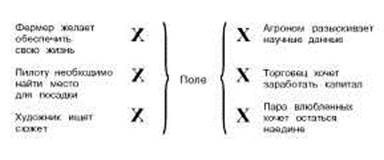 52 Холизм и психоанализ подуть в этот свисток, то тренированная собака остановится как вкопанная, хотя сами вы ничего не услышите. Такой свист лежит как раз за пределами следующего круга, который ограничивает впечатления, получаемые благодаря невооруженным органам чувств. Устойчивости ощущений противостоит непостоянство наших интересов (следующий круг), оказывающее влияние на громадное разнообразие наших наблюдений и контактов. Субъективный мир еще более сужается при потере чувствительности (слепота, анестезия и т.д.), а также в связи с социальными и невротическими запретами. Чтобы проиллюстрировать некоторые моменты взаимозависимости между объективным и субъективным миром, я хочу предложить следующую схему, показывающую один и тот же объект в отношении к нескольким разным людям. В качестве объекта выбрано поле. Мы пытаемся приблизиться к объективному миру с помощью определений и можем приблизительно определить «поле» как участок земли, на котором выращивают зерновые культуры. Является ли так называемая объективная реальность необходимо идентичной субъективной реальности каждого персонажа из данной схемы? Конечно же, нет. Торговец, окидывающий взглядом поле, примется оценивать прибыль, которую он получит от продажи урожая, тогда как влюбленные, выбравшие данное поле для того чтобы удалиться на время от мира, совершенно не заботятся о его денежной стоимости. Художник может вдохновиться медленно изменяющимся узором света и тени, но для пилота, идущего на вынужденную посадку, движения колосьев служат лишь указателем направления ветра. Агроному не важны цветовые сочетания или направление ветра — он изучает химический состав почвы. Ближе всего к объективной реальности, как мы ее определили выше, находится субъективная реальность фермера, который обрабатывал поле и выращивал пшеницу. Все это может показаться сложнее, чем вначале. Из одной реальности мы получили шесть; но общим для всех шее-