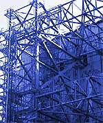 Стабилизация каркаса деаэраторной этажерки выполнена при помощи усиления конструкций каркаса верхнего яруса деаэраторной этажерки.