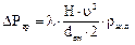 где λ -коэффициент гидравлического сопротивления, определяется в зависимости от числа Рейнольдса (для облегчения расчета можно воспользоваться таблицей VIII.1 [13, стр. 150]). υ - скорость движения жидкости в трубах, м/с При отсутствии необходимой литературы можно принять приближенно υ =5,5 м/с.