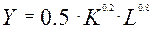 где: Y - объем производства, K - затраты капитала, L - затраты труда (все данные в условных единицах).