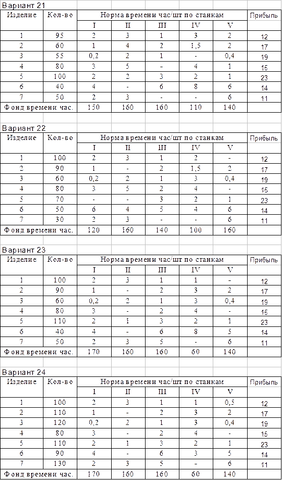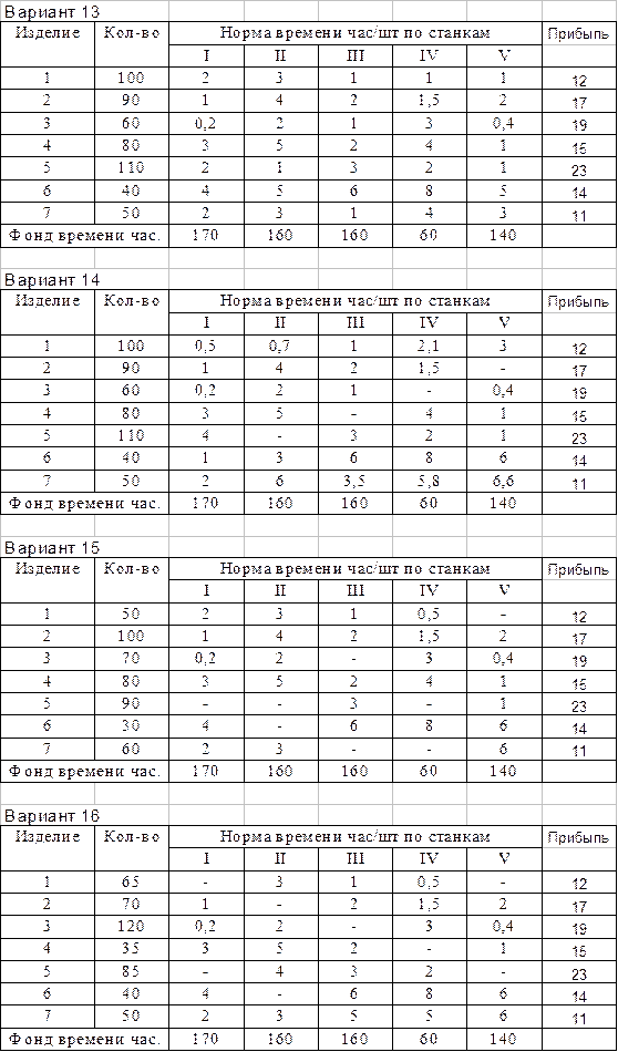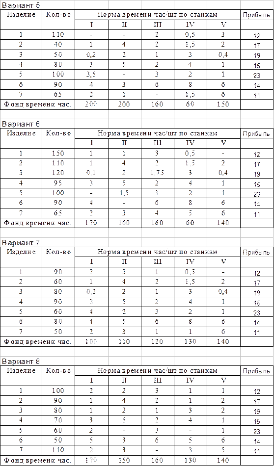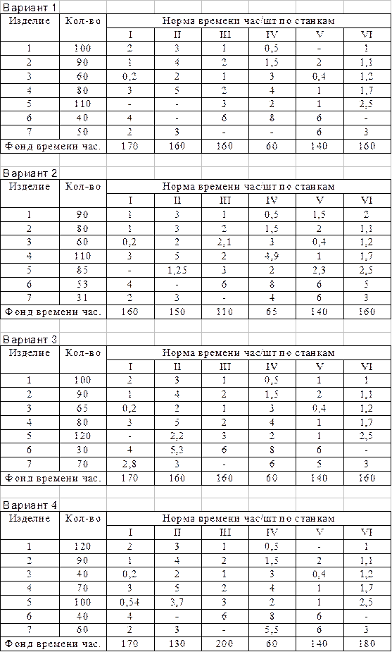 Приложение 1 Задачи на оптимизацию загрузки взаимозаменяемого оборудования