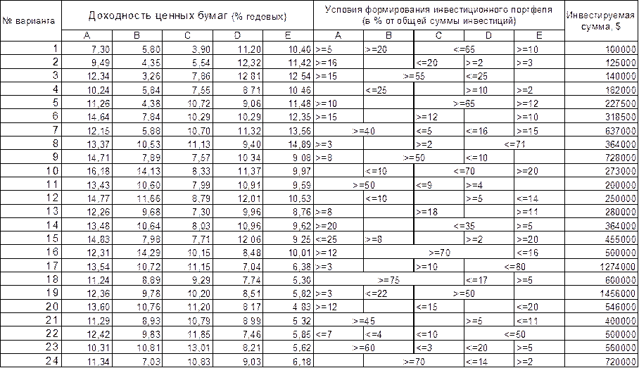 Приложение 5 Варианты задач на оптимизацию портфеля ценных бумаг