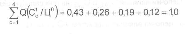 6) Производим проверку полученных результатов: а) суммируем данные последнего столбца (табл. 13.): сумма вкладов всех подсистем в Ц° должна равняться единице, т.е.