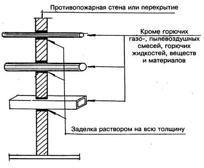 Рис. 12. Пересечение противопожарных стен коммуникациями с пожароопасными веществами и материалами