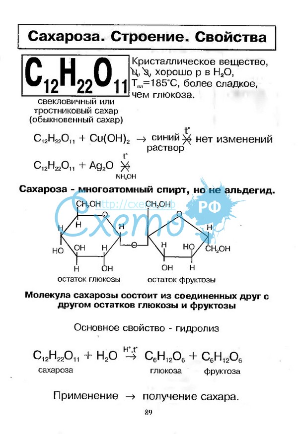свекловичный сахар, тростниковый сахар, в быту просто сахар — дисахарид из группы олигосахаридов, состоящий из двух моносахаридов — α-глюкозы и β-фруктозы. Мальтоза - сахар, в состав которого входят две молекулы глюкозы. Мальтоза образуется в организме человека в процессе переваривания крахмала и гликогена; также она присутствует в проросших зернах злаков. Мальтоза (солодовый сахар) представляет собой 4-(α-глюкопиранозидо)-глюкозу