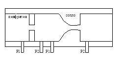 Принцип работы основан на изменении потенциальной энергии вещества, при протекании его через искусственно суженное пространство (увеличивается скорость потока, давление перед сужением будет больше чем в нутрии и после него, при этом перепад давлений пропорционален расходу). Этот перепад давления измеряется с помощью диф. манометров. Применяют три вида сужающих устройств: Мембранные, Сопла, Сопла Вентури.
