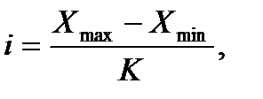 где Хmax – максимальное значение в ранжируемом ряду данных; Хmin – минимальное значение в ранжируемом ряду данных.