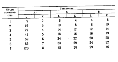Предположим, что цена единицы труда составляет 200 долл., а цена единицы капитала — 400 долл. а) Установите, какую производственную технологию выберет фирма при каждом уровне выпуска продукции б) Определите общие издержки при каждом уровне выпуска продукции. в) Предположим, что цена единицы труда увеличилась до 300 долл., а цена капитала осталась прежней. Повлияет ли это изменение в цене на выбор технологии фирмой? г) Установите, какая технология будет выбрана для каждого объема производства при новом уровне издержек на оплату труда.