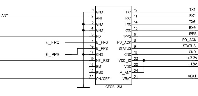 Ручное управление (М) используется, когда пользователь задает приемнику 2D-режим (двумерной навигации) или 3D- (трехмерной навигации). В автоматическом режиме (А) приемник сам переключает режимы работы 2D/3D. Для спутников GPS используются номера с 1 по 32. Для WAAS используются номера с 33 по 64. Номера 65-96 зарезервированы для спутников ГЛОНАСС. Согласно стандарту NMEA v2.x, сообщение GSA может выдавать до 12 спутников в решении включительно. Если количество спутников больше 12, то часть из них не будет отображена в этом сообщении. В случае, когда ГЛОНАСС и GPS используются совместно, передаются два отдельных сообщения, одно по спутникам GPS, другое по ГЛОНАСС. При использовании NMEA v3.x количество спутников в сообщении не ограничивается. В модуле «ГеоС-3» поддерживаются также и нестандартные сообщения NMEA, с помощью которых можно изменять формат сообщений и программировать порты, такие, например, как: SWPROT (переключение в бинарный протокол); SAVEFL (сохранение альманахов во flash); CSTART (холодный старт); WSTART (теплый старт) и др. Функция самотестирования позволяет каждую секунду проводить контроль работоспособности PPL (аналоговой части), антенны, усиления сигналов ГЛОНАСС и GPS, RTC, резервного ОЗУ. С целью энергосбережения модуль «ГеоС-3» может работать в следующих режимах ограниченной функциональности: · «Выключен» — приемник обесточен. Целевая функция получения навигационных данных (ЦФПНД) не выполняется. Ток по цепи VDD — 200 мкА. · «Резерв» — приемник обесточен. ЦФПНД не выполняется. Ток по цепи VBAT 8 мкА. · «Обнулен» — питание подано. ЦФПНД не выполняется. Ток по цепи VDD 19 мА. · «Активен» — питание подано. ЦФПНД выполняется. Ток по цепи VDD 59 мА. · «Сон» — питание подано. ЦФПНД не выполняется. Ток по цепи VDD 5,5 мА. Подробное описание работы модулей «ГеоС-3» в режиме энергосбережения приведено в. Для запуска модуля «ГеоС» в работу в минимальной конфигурации достаточно подключить питание и антенну. При этом на выходы TX0, TX1 будут поступать навигационные данные, полученные приемником в бинарном и NMEA-протоколах (уровни сигналов TTL). Следует подчеркнуть, что модули «ГеоС-3», кроме обязательной сертификации, имеют также сертификат ВНИИФТРИ, который удостоверяет, что модули семейства «ГеоС-3» прошли все необходимые метрологические испытания и внесены в реестр средств измерения.