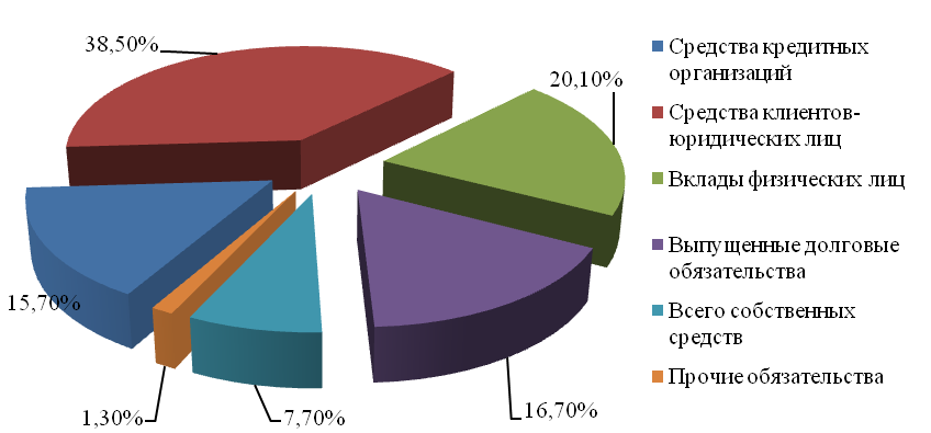Рисунок 1.2 - Структура пассива баланса ОАО «УРАЛСИБ» в 2013-2014гг. (тыс.руб.)