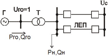Рисунок 1 – Розрахункова схема для дослідження статичної стійкості електричної системи