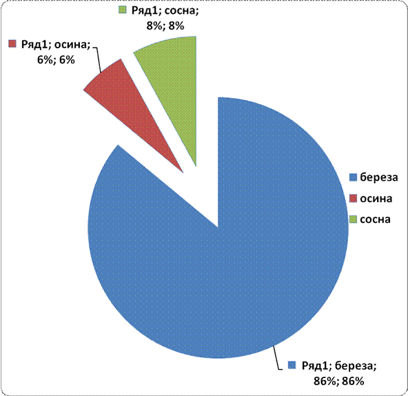 Рисунок 3 Доля участия деревьев от общего количества на пробной площади