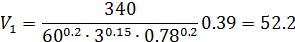 Показатели степени x, y, n – табличные значения. Для черновой обработки: x=1.0, y=0.75, n=-0.15.