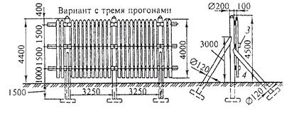 Рисунок 4.2. Конструкция снегозадерживающего забора высотой 4,5 м - расчеты и описание комплекса мероприятий по защите станций от снежных заносов; - очередность, объем и порядок работы по очистке и уборке снега с горловин, стрелок и путей; - необходимое число машин и механизмов; - маршруты вывоза снега и места их выгрузки; - необходимое количество подвижного состава, инвентаря и рабочих из расчета уборки снега со всех станционных путей не более чем за трое суток. Очистка путей, стрелочных переводов, горловин станций включает в себя следующие операции: очистку снега, погрузку его в полувагоны снегоуборочных машин, вывоз снега и выгрузку его в заранее отведенных местах.