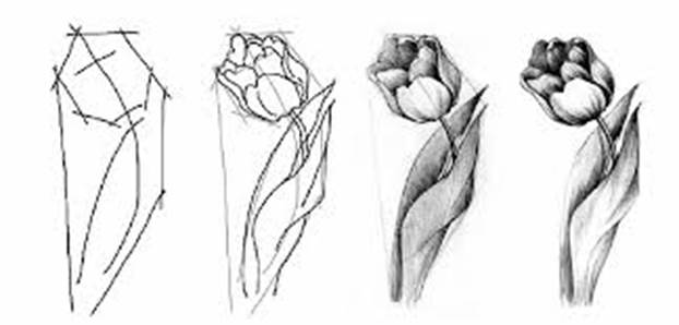 Рисование цветов — задача более трудная, чем рисование листьев. Форма цветов в отличие от формы листьев более сложная и разнообразная: колесовидная, колокольчатая, трубчатая, дискообразная, воронкообразная, шаровидная и т.д., что привлекает не только художников, но и мастеров народных художественных промыслов, создающих неповторимые по красоте и образному строю цветочные орнаменты и декоративные композиции.