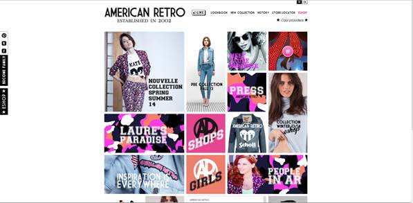 Откуда взялось название марки? Создатель бренда рассказывает так: «Все дело в том, что я безумно люблю Америку, очень часто туда езжу и знаю эту страну как свои пять пальцев. А еще я люблю винтаж. Так что название моего бренда получилось само собой — из того, что меня вдохновляет». Логотип AmericanRetroшрифтовой. (см.: рис. 1.2.2.3)