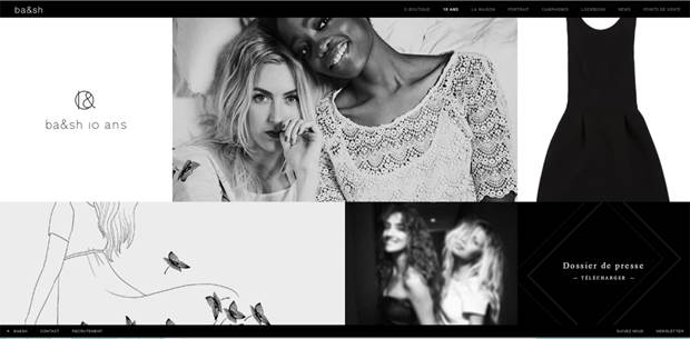 Сайт (www.ba-sh.com) Сайт начинается с маленького видео, на котором девушка в одежде BA&SH улыбается и идет вперед. По середине всегда написан белым цветом логотип (см.: рис. 1.2.3.4).