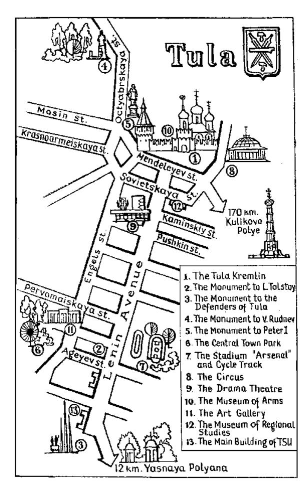 XV. Speak about: 1) the past of Tula; 2) the industries of Tula; 3) Tula of today; 4) the places of interest in Tula; 5) the educational establishments in Tula.