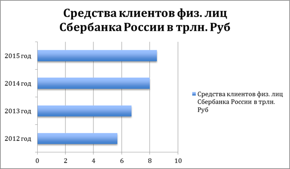 Анализ средств клиентов физ. лиц в Сбербанке России за 2012-2015 года В ТРЛН. РУБ. (анализ привлеченных средств)