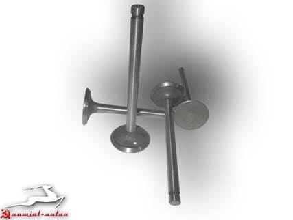 Клапана- установлены в металлокерамических направляющих втулках. Втулки запрессованы в головку и являются съемными, хотя поменять направляющую втулку весьма непросто. Седла клапанов так же вставные, чугунные. Притиркой клапана к седлу обеспечивается его герметичность. Клапан прижимается к седлу двумя пружинами, упирающимися в тарелку пружины клапана, представляющую собой широкую шайбу. Тарелка пружины фиксируется на клапане двумя сухариками, установленными в канавку в верхней части штока клапана. Чтобы снять клапан надо сжать пружины и извлечь сухарики. Две пружины клапана имеют разный диаметр и вставлены одна в другую. Наличие двух пружин обусловлено требованиями надежности - если лопнет одна пружина, клапан не упадет в цилиндр, а будет держаться на второй пружине. При регулировке должен быть обеспечен требуемый зазор между коромыслом и верхним торцом клапана, во избежание нарушения герметичности и прогорание клапана. Направляющие клапанов уплотнены маслосъемными колпачками. Клапаны изготовлены из жаропрочных сталей: впускной клапан - из хромокремнистой, выпускной - из хромоникельмарганцовистой с присадкой азота. На рабочую фаску выпускного клапана дополнительно наплавлен более жаростойкий хромоникелевый сплав. Торцы стержней клапанов закалены до высокой твердости. Диаметр стержня клапанов 9 мм. .