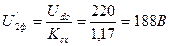 В соответствии с трехфазной мостовой схемой определяется требуемое значение фазного напряжения вторичной обмотки трансформатора.