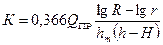 Мұндағы: Н – сулы қабаттың қалыңдығы; Һ – сулы қабат табанынан есептелетін айдауда құдықтағы су бағанының биіктігі. Һ-Н=P жоб. ескере отырып формуланы былай жазуға болады: