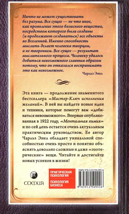 Современные неудовлетворительные условия следует считать симптомами разрушительной и глубоко укоренившейся болезни. Все наши попытки исцелить их с помощью законодательства и подавления недовольства ведут лишь к временному облегчению, однако не затрагивают саму болезнь. Так что в скором времени она проявится в новых, еще более тяжких симптомах. Сколько ни латай дряхлую и разлезающуюся одежду, лучше она от этого не станет. Конструктивные меры необходимо применять к основам цивилизации, то есть к нашему мышлению. Разумное существо не нуждается в философии, которая базируется на слепом оптимизме, в религии, которая не будет работать семь дней в неделю, и в проекте, который не отличается практичностью. Люди заинтересованы в конечных результатах, поэтому на все они смотрят через призму вопроса: будет ли это работать? Только глядя на то, что невозможно, мы в состоянии постичь возможное. Нужно пройти нетореным путем мысли, пересечь пустыню невежества, пробраться через «Болото Предрассудков» и вскарабкаться на пики обрядов, чтобы добраться наконец до места, именуемого «землей обетованной». Всем правит разум! Любая разумно направленная мысль представляет собой творческую силу, объект воздействия которой обязательно проявится на творческом плане. Имеющий уши да услышит! Одним из признаков всеобщего пробуждения является оптимизм, лучи которого пробиваются сквозь мглу сомнений и беспокойства. Этот оптимизм принимает форму озарения, изгоняя из нашей жизни страх, злость, эгоизм, сомнения и жадность. Люди стоят на пороге Истины, которая одна только и может сделать их свободными. Отныне свет этой Истины будет сиять не единицам, но всем представителям человечества. Все мысли, которые мы достаточно долго удерживаем в сознании, переходят затем в подсознание, превращаясь в законченные образцы мышления. Только после этого творческая энергия претворяет их в действительность. В этом и заключается сила молитвы. Этот закон был известен и прежде, но только немногим избранным. Однако ученики эзотерических школ строго хранили свои секреты, поскольку опасались, что неподготовленные умы используют во зло ту силу, которой наделяет человека знание базовых принципов Вселенной. Известно, что во Вселенной правит закон и что у каждого следствия есть своя причина. Мы знаем также, что при схожих условиях одна и та же причина неизбежно влечет за собой один и тот же эффект. Следовательно, если на молитву уже давался ответ, мы и впредь можем ожидать подобного отклика — при соблюдении, конечно же, определенных условий. В этом не может быть никаких сомнений, иначе наша Вселенная была бы не космосом, а хаосом. Таким образом, ответ на молитву определяется единым законом, и этот закон столь же точен и научно обоснован, как законы тяготения и электричества. Усвоив этот принцип, мы выведем христианство из сферы предрассудков и слепой доверчивости, поместив его на твердую почву научного познания. Творческий Принцип Вселенной не делает исключений. А еще он никогда не действует под влиянием гнева, зависти или раздражения. Его невозможно обмануть. Мольбы и лесть здесь также бессильны. Но стоит нам осознать свое единство с этим Универсальным Принципом, как жизнь начинает нам благоволить. И все потому, что мы открыли для себя источник мудрости и силы. Каждый мыслящий 