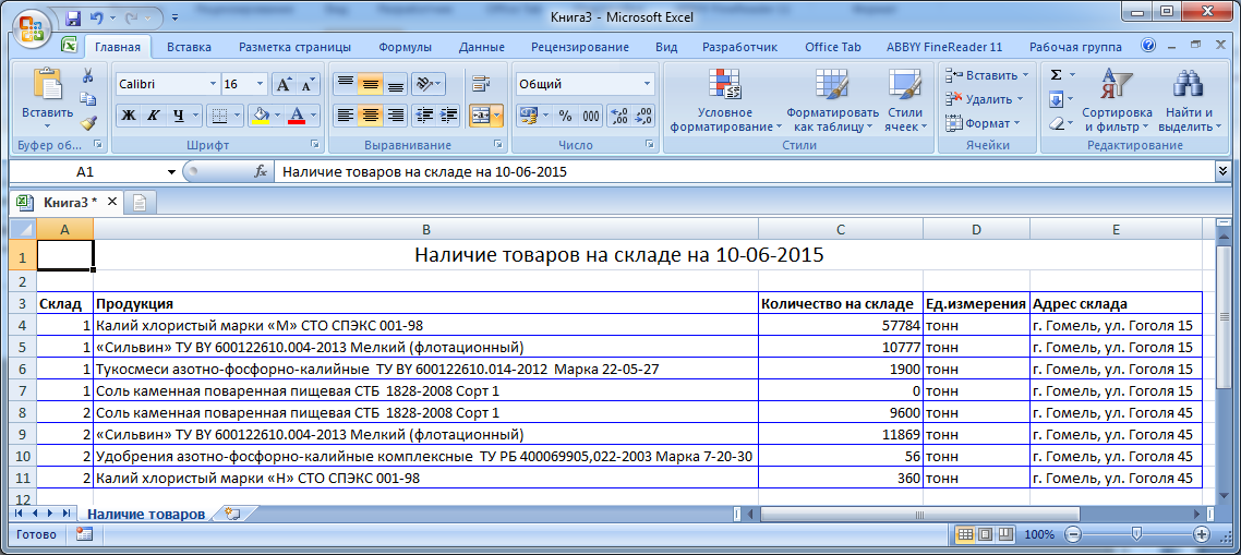 Учет передвижения продукции