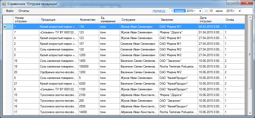 Рисунок 3.12 — Форма «Справочник «Отгрузка продукции»»