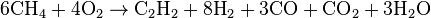 Термоокислительный крекинг Электрокрекинг Крекинг природного газа (промышленный способ Метод заключается в пропускании метана между двумя металлическими электродами с огромной скоростью. Температура 1500—1600°С. С химической точки зрения метод аналогичен методу пиролиза, отличаясь лишь технологическим и аппаратным исполнением[14] В этом методе используется частичное окисление метана благодаря использованию теплоты, образующейся при его сгорании[14]: