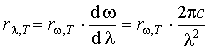 Отсюда получаем формулу связи между испускательными способностями по шкале частот и шкале длин волн