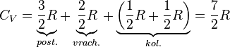 Зависимость теплоемкости газов от температуры. В частности, для газа, состоящего из двухатомных молекул, теплоемкость складывается из поступательной, вращательной и колебательной частей и равна