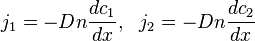 Помимо движения газа как целого существет процесс пространственного перераспределения компонент смеси относительно друг друга, обусловленный случайным движением молекул. Это неравновесный процесс, который называется диффузией. Пусть имеется бинарная смесь с плотностью Пусть средняя скорость тесения газа